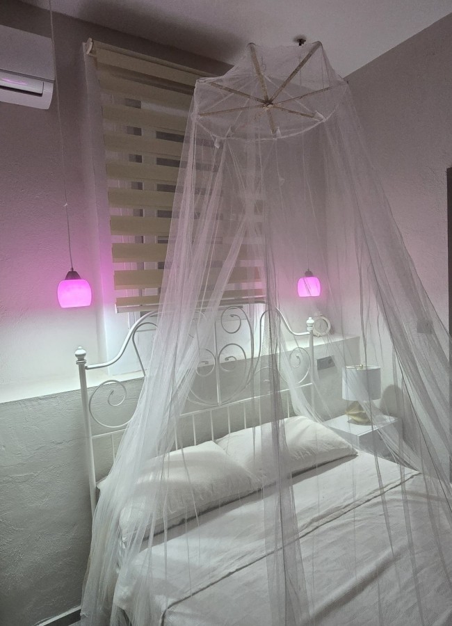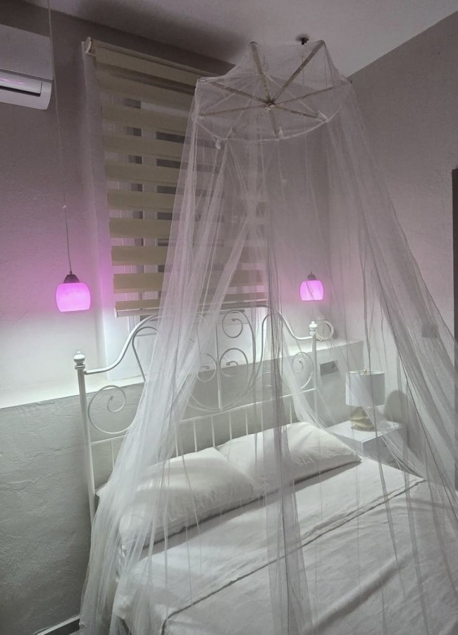 | Yatma Alanı ve Konfor | İki kişilik konforlu çift kişilik yatak. Özel cibinlik sistemi ve şık dekoratif aydınlatmalar. Oda içi küçük yemek/çalışma masası ve sandalye grubu. |