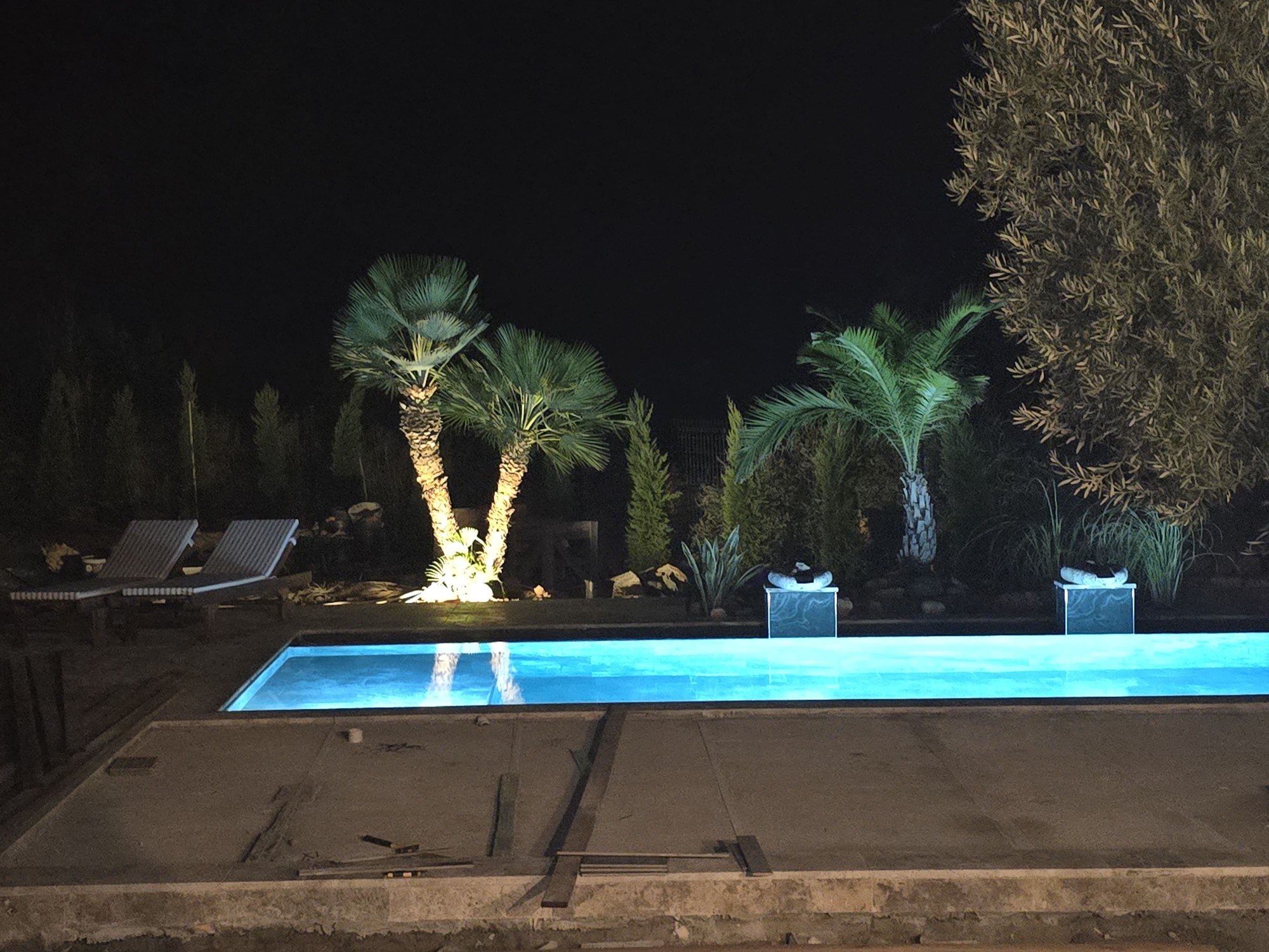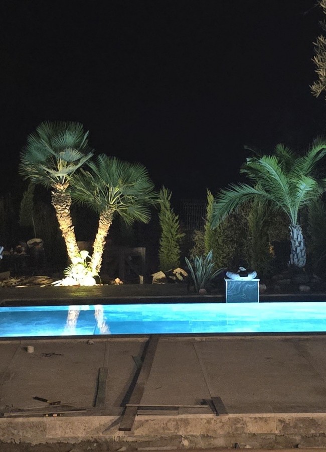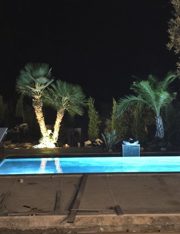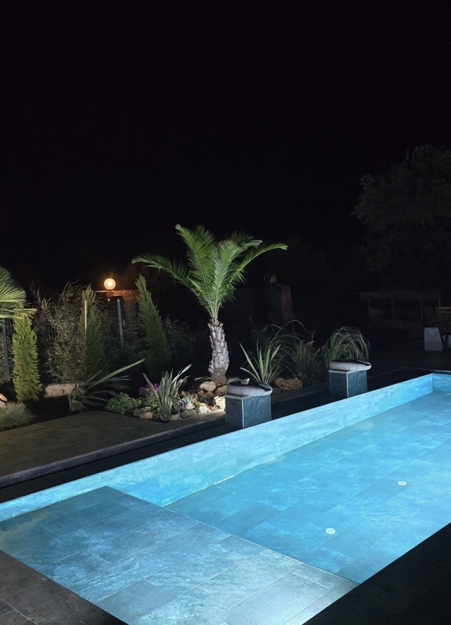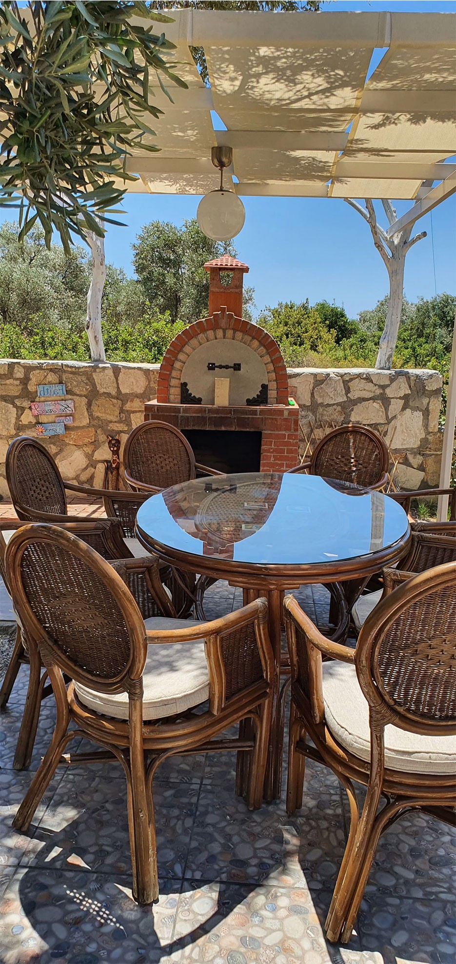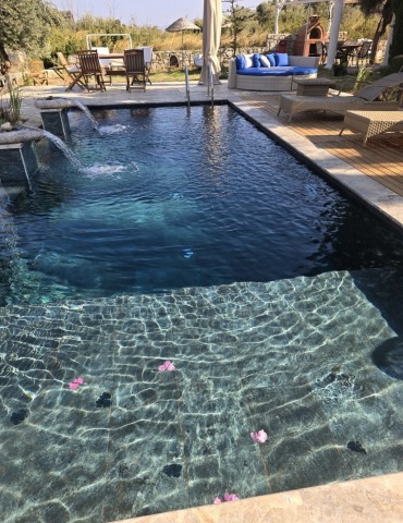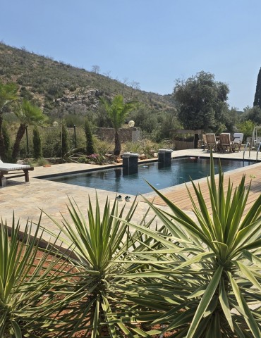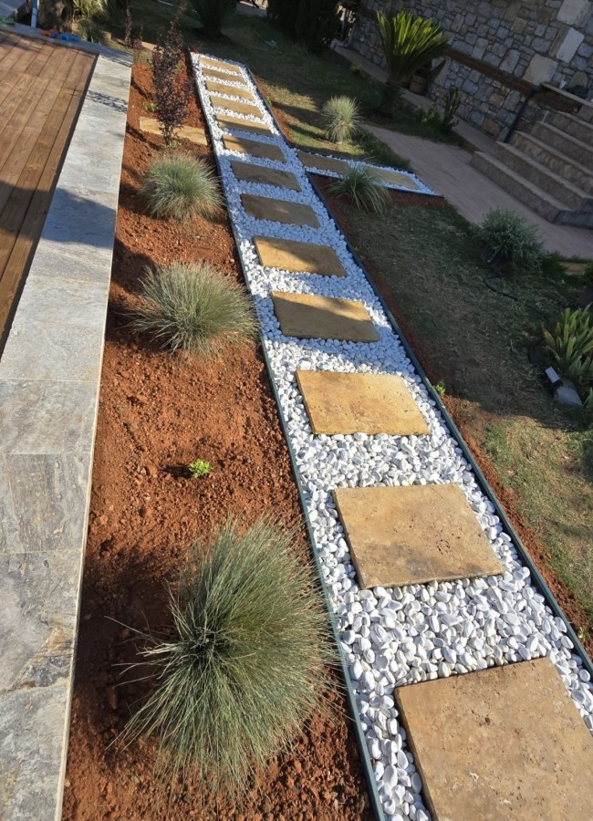 | Bahçe ve Havuz | 1.5 Dönüm arazi içinde 50 yıllık zeytin ağaçları ve begonvillerle çevrilidir. Özel şelale detaylı yüzme havuzu ve geniş ahşap deck alanı mevcuttur. |