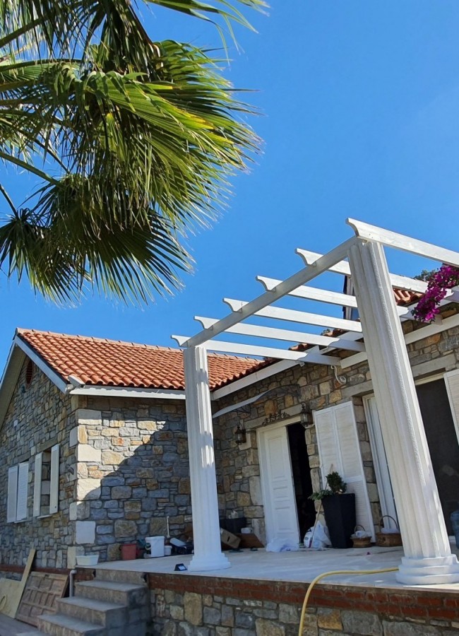 | Mimari Detaylar | Özel mimari dekorasyonlu müstakil taş villadır. 50 cm kalınlığında gerçek taş duvarlar ve 5 metre tavan yüksekliğine sahiptir. Çatı yapısında Osmanlı kiremiti ve iç mekanda ithal ahşap kaplamalar kullanılmıştır. |
